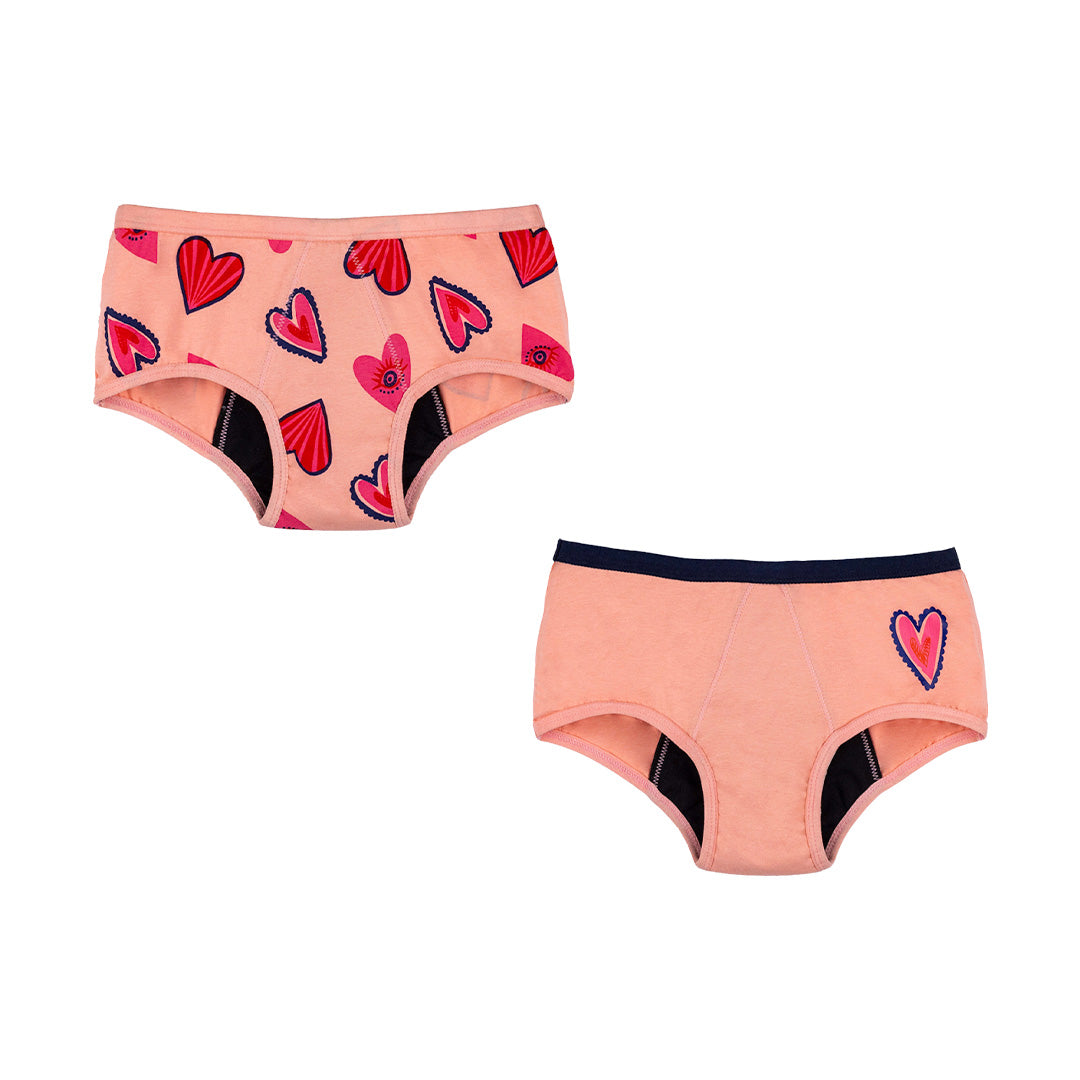We recommend starting with 3-5 pairs of period panties for kids, ensuring they're covered for an entire cycle.