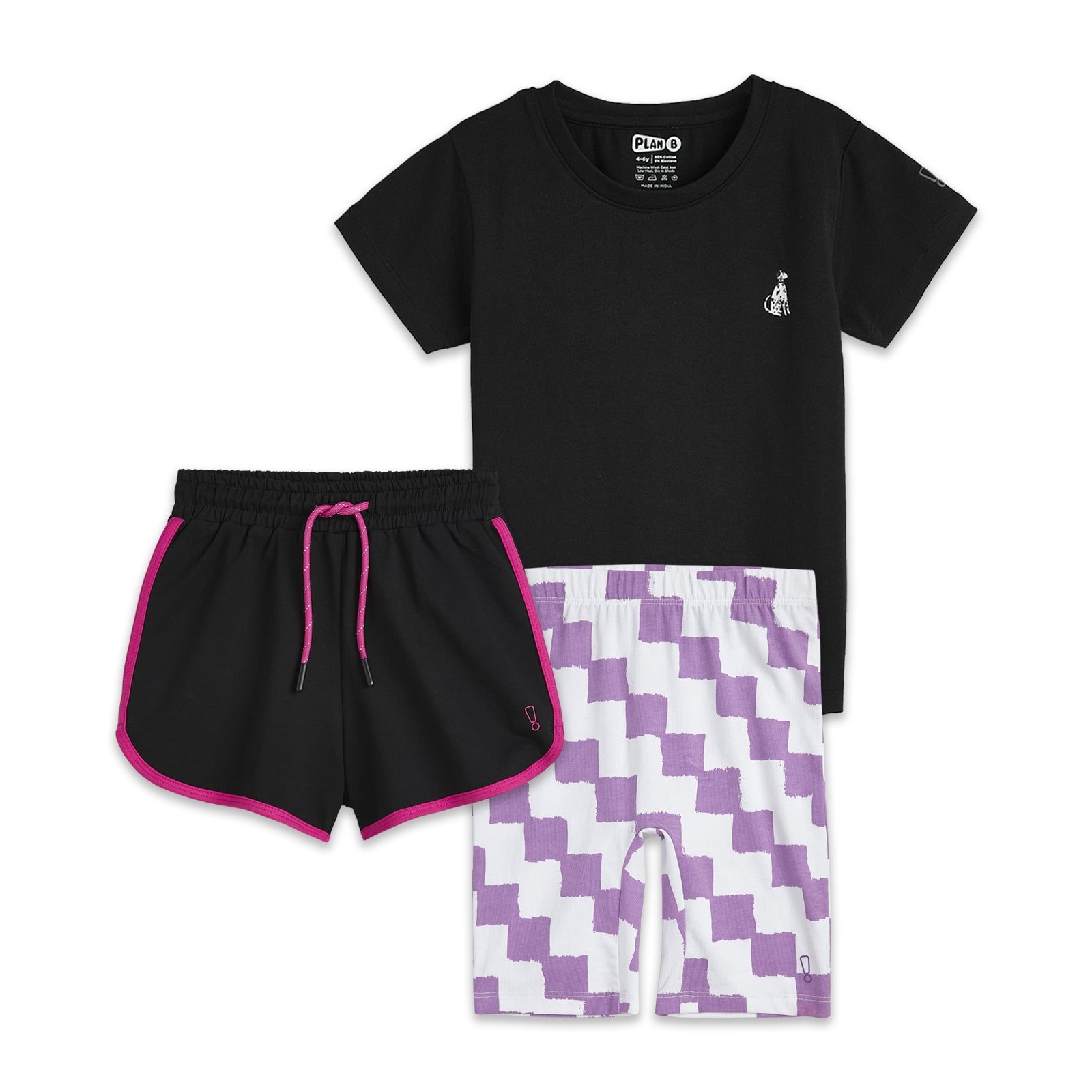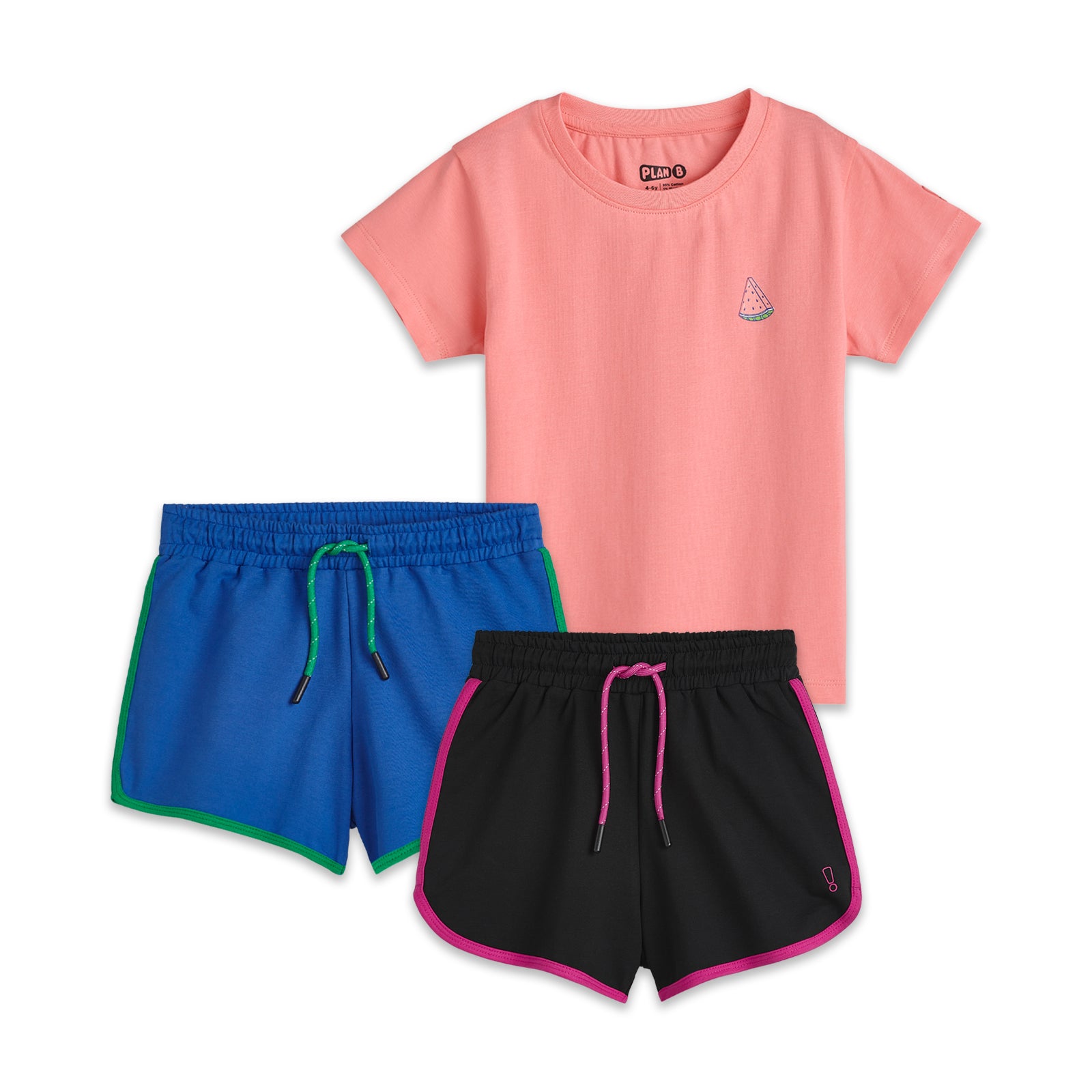 Peach Tshirt with Blue & Black Runner Shorts Set