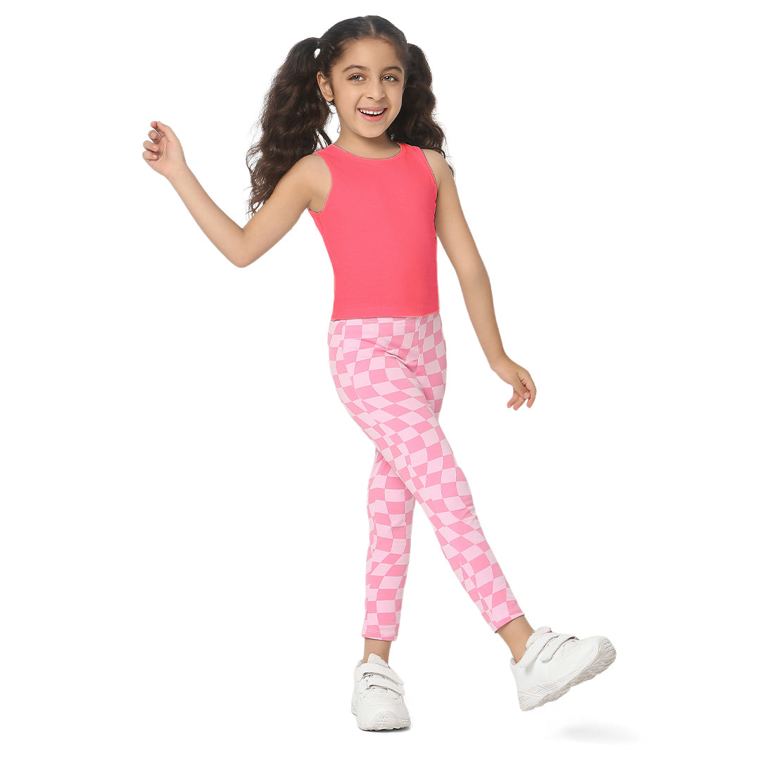 Pink Tank Top & Checkered Leggings Set