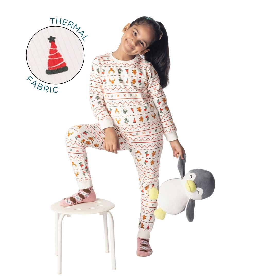 White Xmas Winter Co-ord Set for Girls