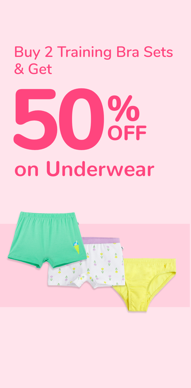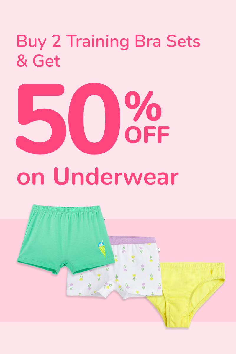 - Starry 3-Pack Training Bras: Let's bring some stars for your star kid with this pack of adorable starry-printed 3-pack bras for beginners in different colours. Non-padded with no underwires, these bras offer all-day comfort under clothes, making them ideal for active days. Our client Rajita Kumari says, “Very good product. Soft material and comfort. My daughter loves it...”