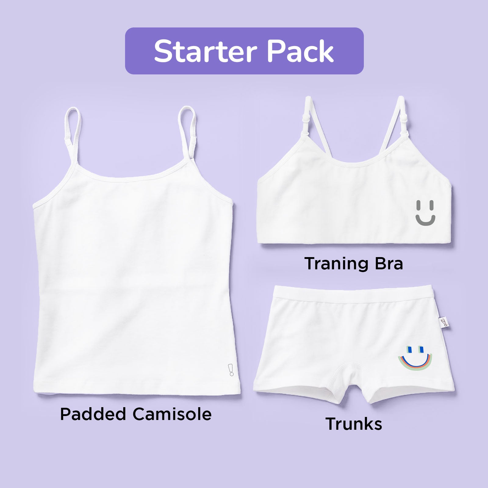 - Starry 3-Pack Training Bras: Let's bring some stars for your star kid with this pack of adorable starry-printed 3-pack bras for beginners in different colours. Non-padded with no underwires, these bras offer all-day comfort under clothes, making them ideal for active days. Our client Rajita Kumari says, “Very good product. Soft material and comfort. My daughter loves it...”
