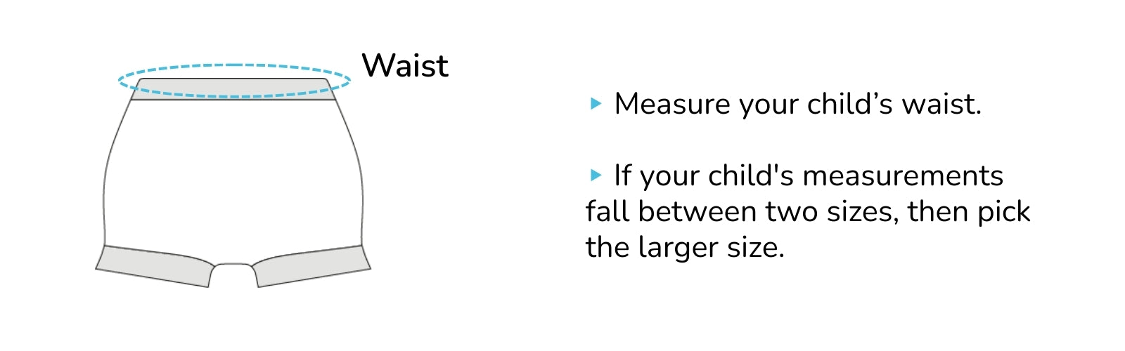 Plan B's girls bloomers size chart is very accurate when proper measurements are taken. Always measure your child's waist and compare it to our chart for the best online shopping experience.