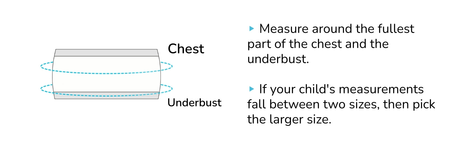 | Age | Chest (in) | Chest (cm) | Underbust (in) | Underbust (cm) |