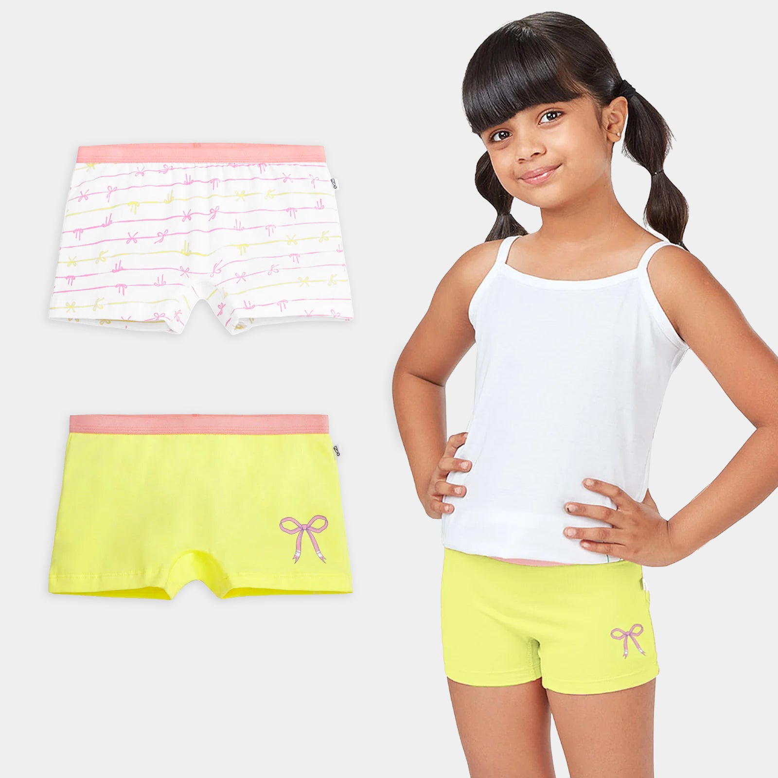 A pack of two trunks for girls. Crafted from premium cotton-rich fabric that is breathable, light and super stretchy. The snug fit is complemented by an external waistband. The anti-microbial finish ensures all-day freshness at every activity level. Tried, tested and adored by lakhs of girls across India.