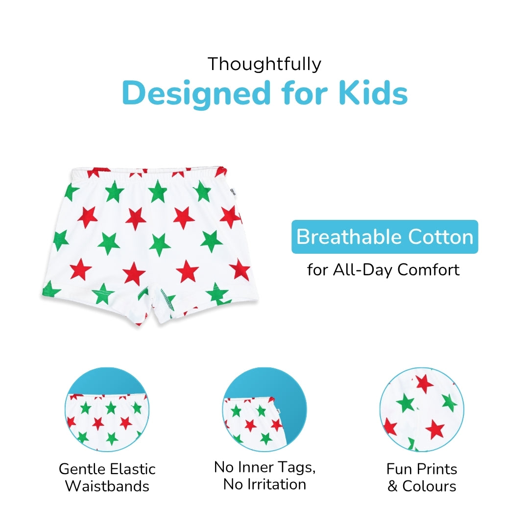 White cotton boxers for girls with a Christmas-inspired print. The roomy fit, soft-on-the-skin elastic bands and anti-microbial finish ensure all-day comfort. These boxers are also good to lounge in. The fabric makes the boxers stretchy and comfortable.
