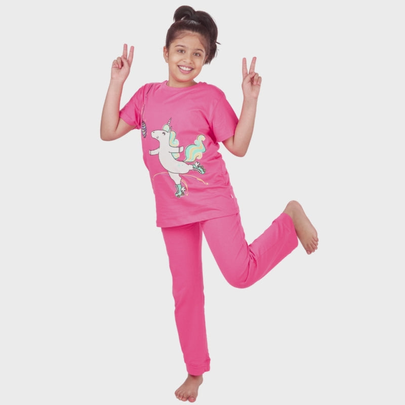 Dancing Unicorn PJ & Tee Nightsuit - Glow in the Dark