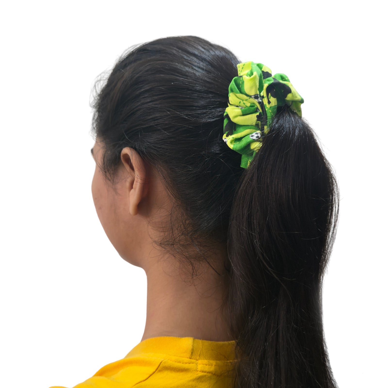 A cotton scrunchie upcycled from excess production fabric. Designed with soft, stretch-friendly fabric. It’s the perfect hair accessory for brightening up your outfit.