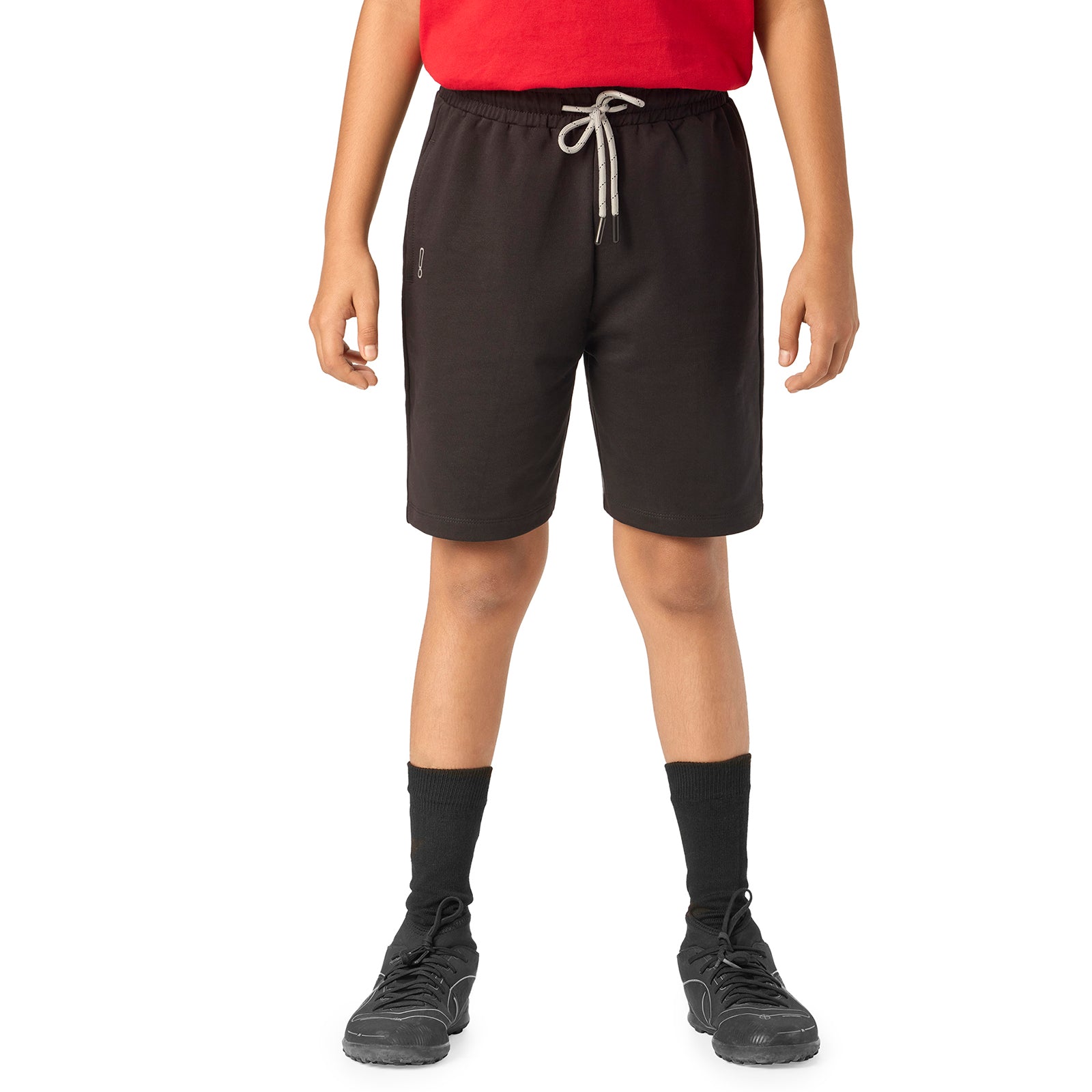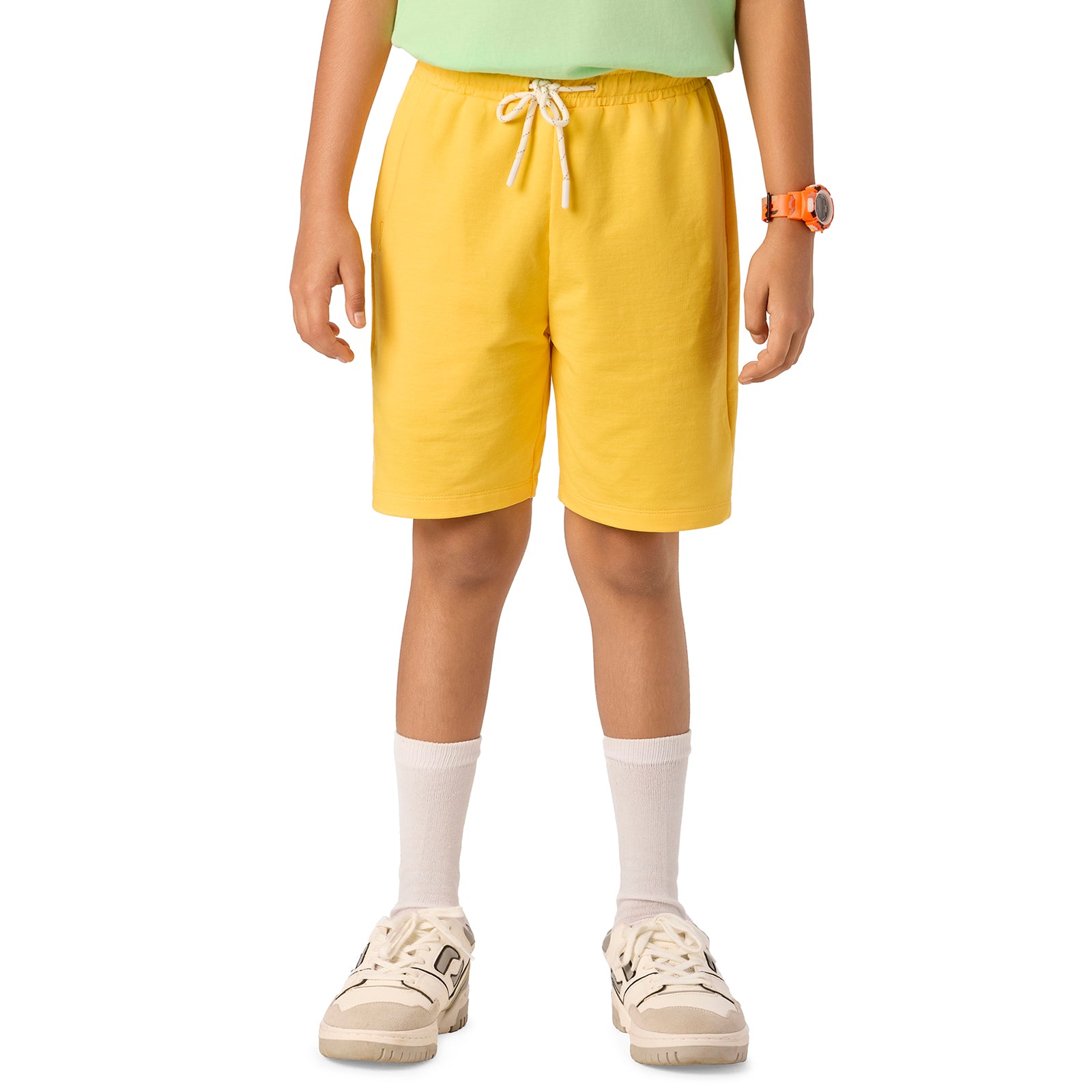 Sporty cotton shorts for boys. Crafted for non-stop fun. Stretchy with a relaxed fit, these are perfect for all-day wear, be it naptime or playtime. They have an elasticated waistband, drawstrings and a cool side pocket. An absolute everyday essential for your little one. Best paired with vests and tshirts for boys from Plan B.