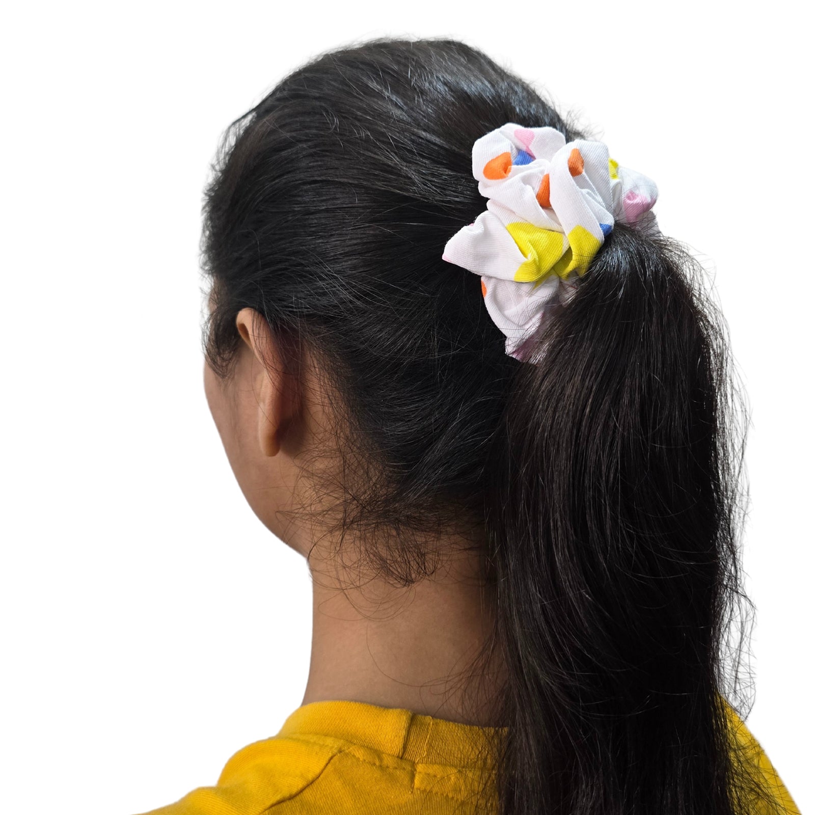 A cotton scrunchie upcycled from excess production fabric. Designed with soft, stretch-friendly fabric. It’s the perfect hair accessory for brightening up your outfit.