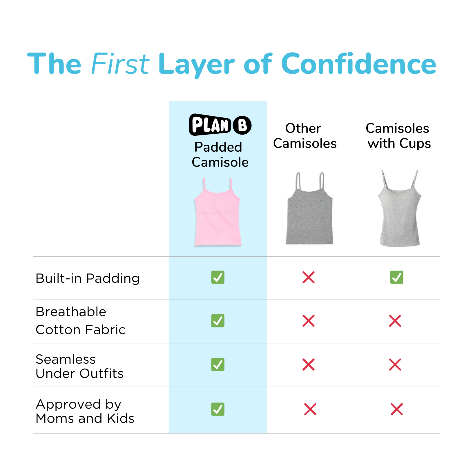 Padded Camisoles from Plan B are specially designed for pre-teens and teens. Made with a premium cotton blend fabric, it offers superior softness against the skin and the perfect blend of comfort and confidence. The sewn-in padding provides optimal coverage and is designed to fit naturally to your growing child's body contours.
