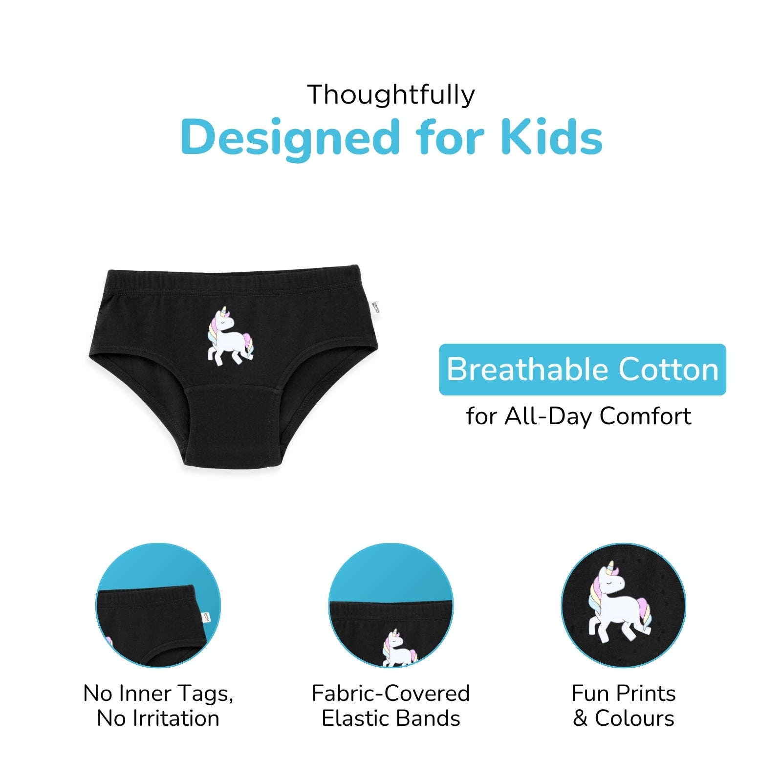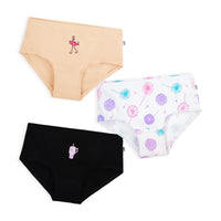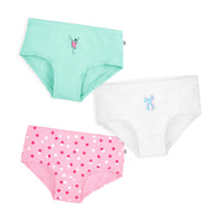 A pack of three hipsters for girls. Crafted from cotton-rich fabric that’s light, breathable and stretchy. The snug fit, soft-on-the-skin elastic bands and anti-microbial finish ensure all-day comfort. Tried, tested and adored by lakhs of girls across India.