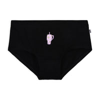 Design note: Cute, tiny prints on lavender, white and black hipsters.
