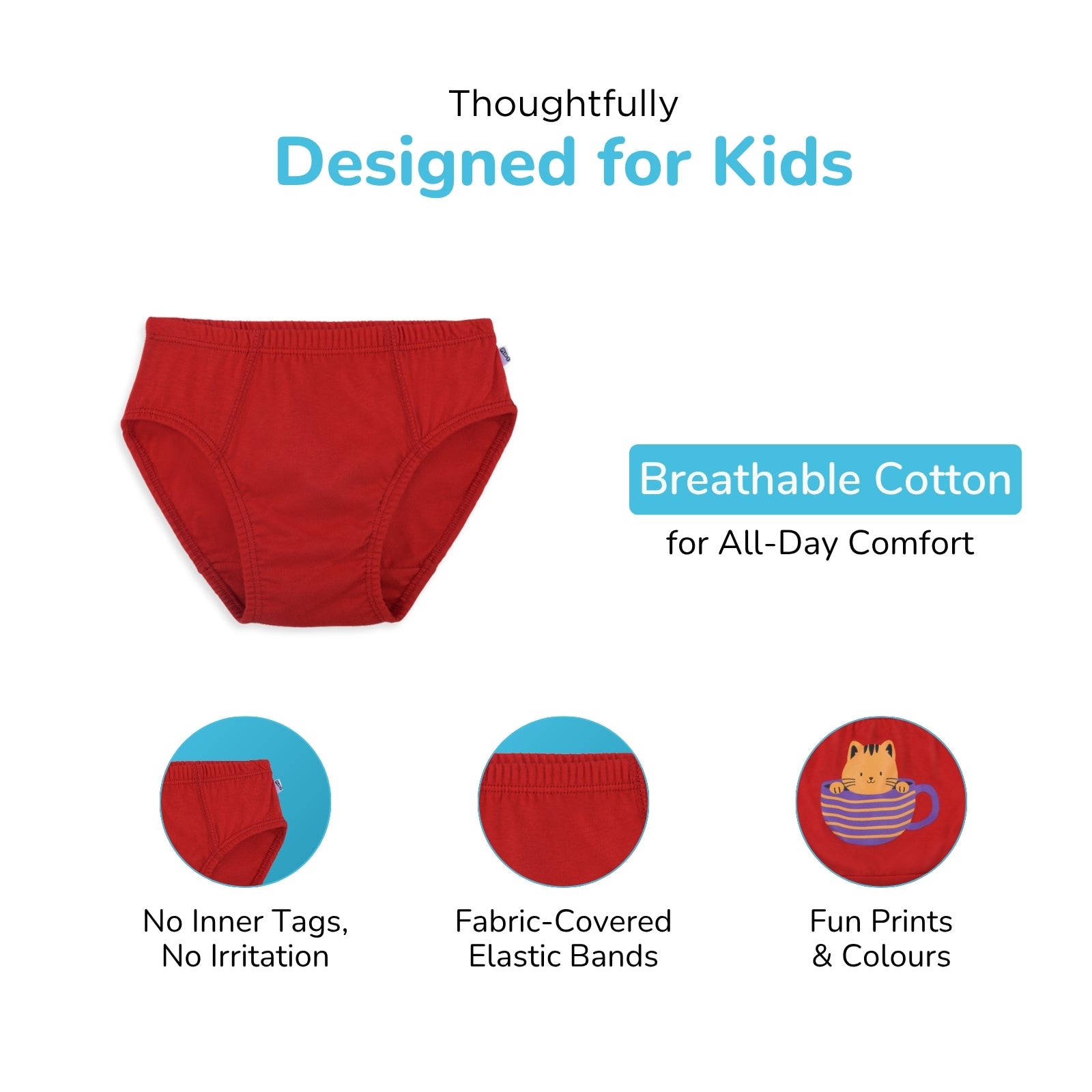 A pack of three briefs for boys. Crafted from premium, breathable 100% cotton fabric. The relaxed fit, soft-on-the-skin elastic bands and anti-microbial finish ensure all-day comfort. Tried, tested and adored by lakhs of boys across India.