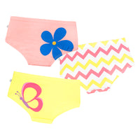 A pack of three panties for girl. Crafted from premium, breathable 100% cotton fabric. The relaxed fit, soft-on-the-skin elastic bands and anti-microbial finish ensure all-day comfort. Tried, tested and adored by lakhs of girl across India.