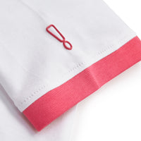 Design Note : White relaxed fit t-shirt with a contrast pink rib on the sleeves