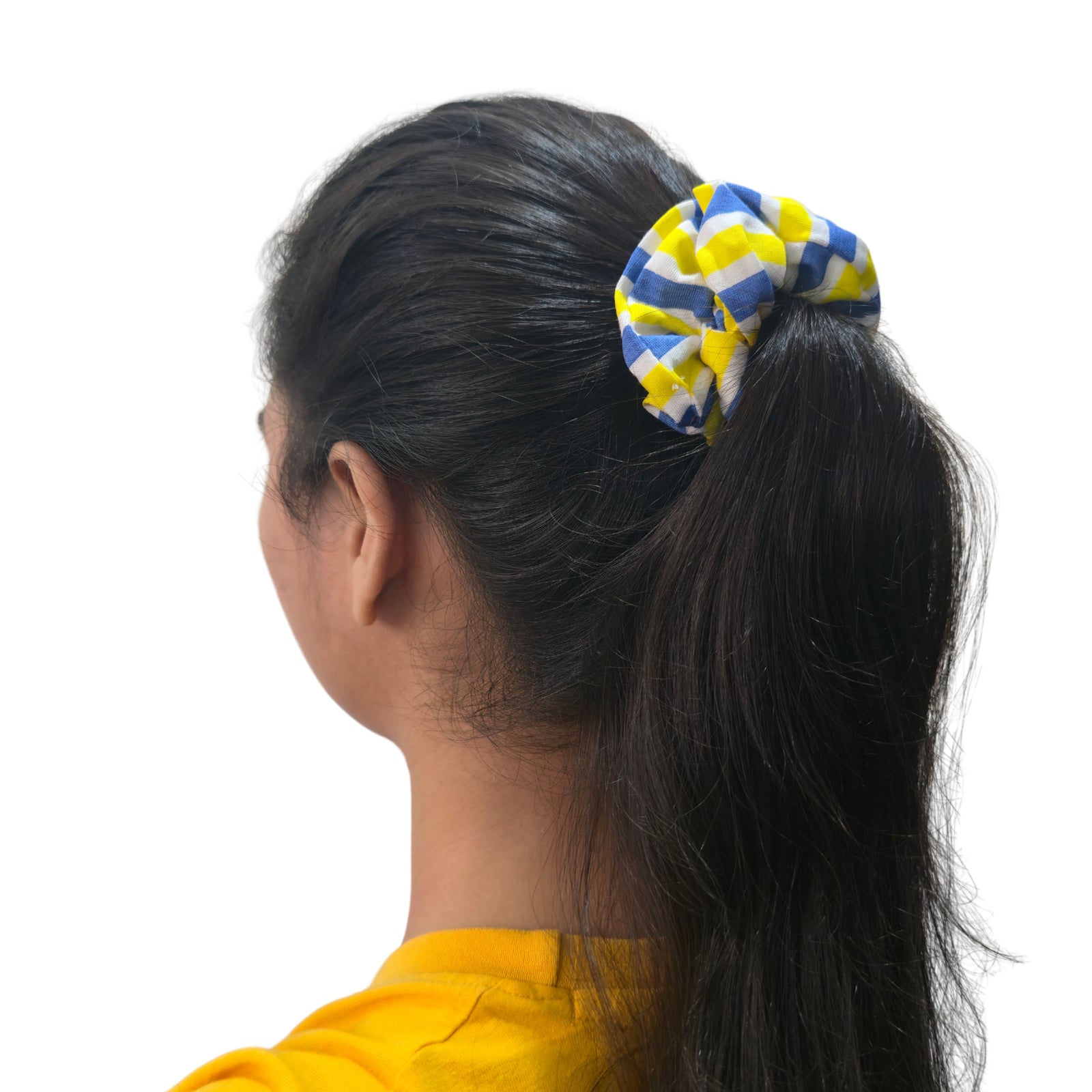 A cotton scrunchie upcycled from excess production fabric. Designed with soft, stretch-friendly fabric. It’s the perfect hair accessory for brightening up your outfit.