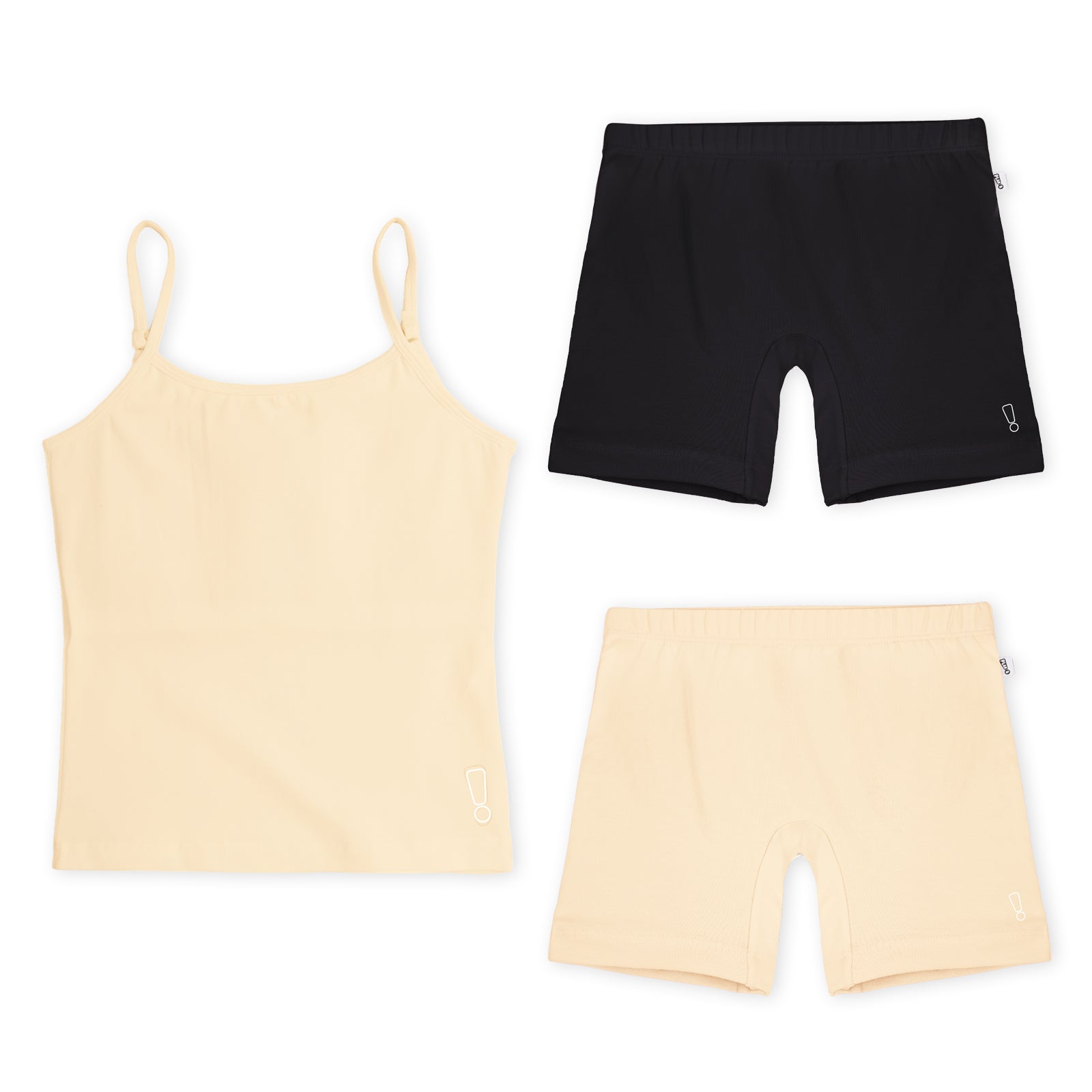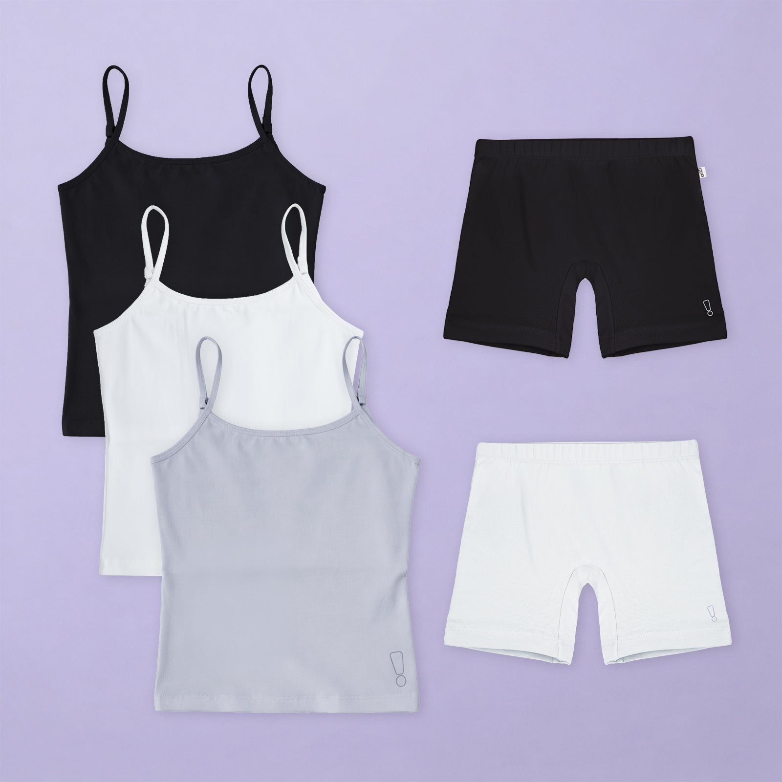 A set of 3 Padded Camisoles and 1 Inner Shorts for preteens/tweens. Great combo for all-day, everyday comfort. Crafted from premium, skin-friendly cotton fabric that offers superior softness. Designed to fit naturally and provide the perfect blend of comfort and confidence for growing girls.