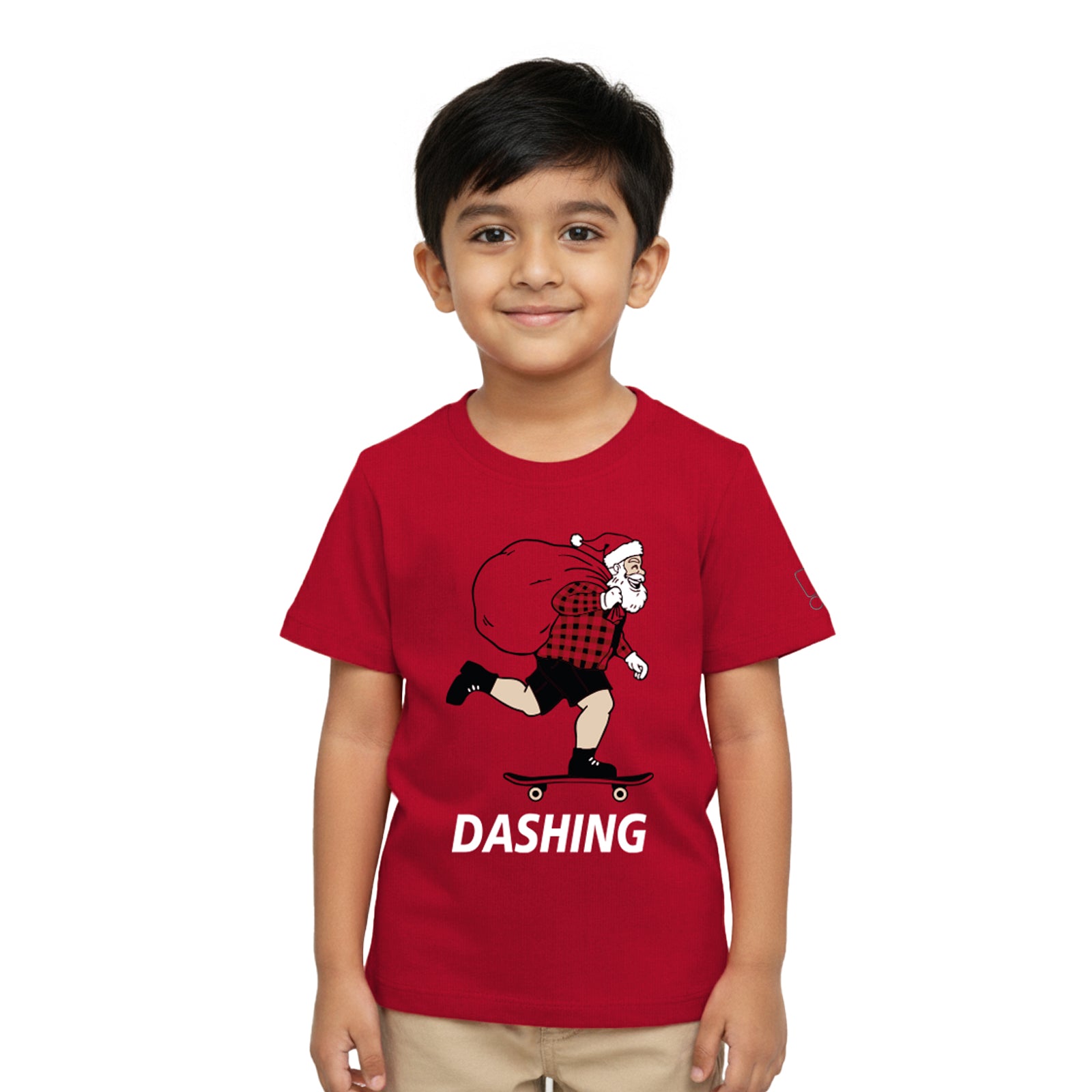 Product Design Note: A green t-shirt with a cute snowman, a reindeer, and a stylized Christmas tree outline print.