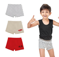 A pack of three boxers for boys. Crafted from premium cotton fabric. The roomy fit, soft-on-the-skin elastic bands and anti-microbial finish ensure all-day comfort. These boxers are also good to lounge in. Tried, tested and adored by lakhs of boys across India.