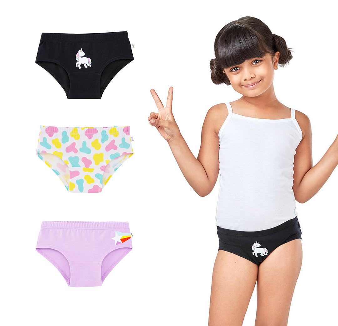 A low-waist panty for preteens/tweens. Crafted from premium, breathable 100% cotton fabric. The relaxed fit, soft-on-the-skin elastic bands and anti-microbial finish ensure all-day comfort. Tried, tested and adored by lakhs of girls across India.